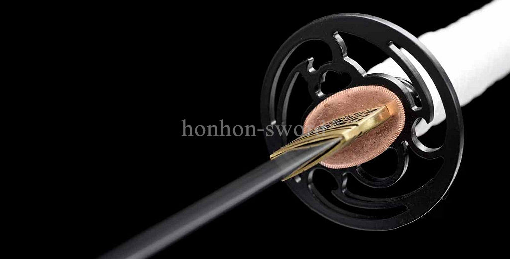 4. Die Klinge hat eine durchgehende Angel, die die Kraft des Schwertes beim Schwingen deutlich erhöht, und sie wird entsprechend Ihren Anforderungen signiert. (Bitte kontaktieren Sie uns über eine eBay-Nachricht, wenn Sie das Datum oder den Namen auf der Angel signieren möchten.)