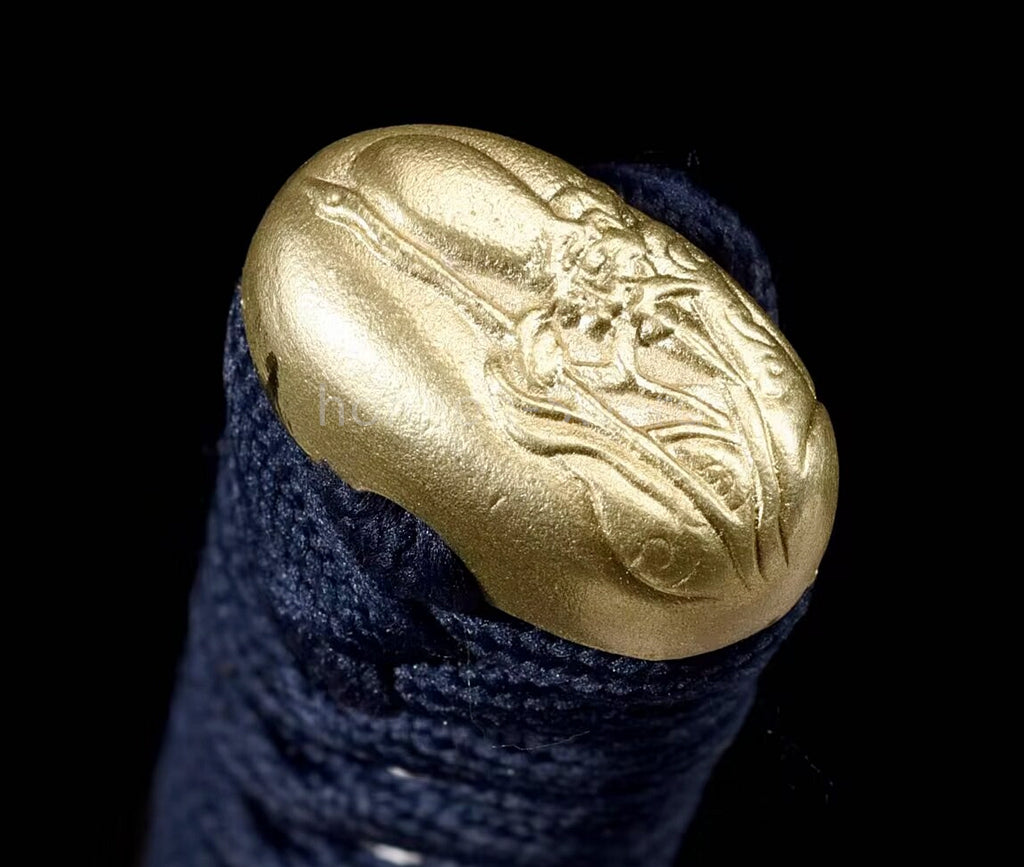 Das Katana-Schwert besteht aus gefaltetem Stahl in Maru-Struktur und verfügt über eine durchgehende Angel, die die Kraft des Schwertes beim Schwingen deutlich erhöht. Vollständig handgeschmiedet, handgeformt und handpoliert in der traditionellsten Schwertherstellungsmethode.