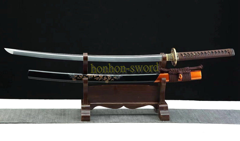 L'épée katana est fabriquée en acier plié dans la structure Maru et est livrée avec une soie pleine longueur qui améliore considérablement la résistance de l'épée lors du balancement. Entièrement forgée à la main, mise en forme à la main, polissage à la main selon la méthode de fabrication d'épée la plus traditionnelle.