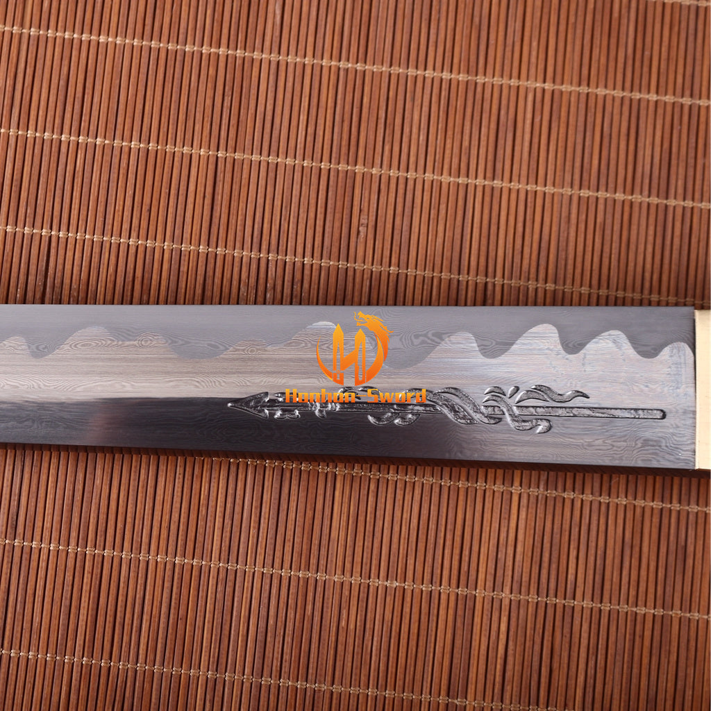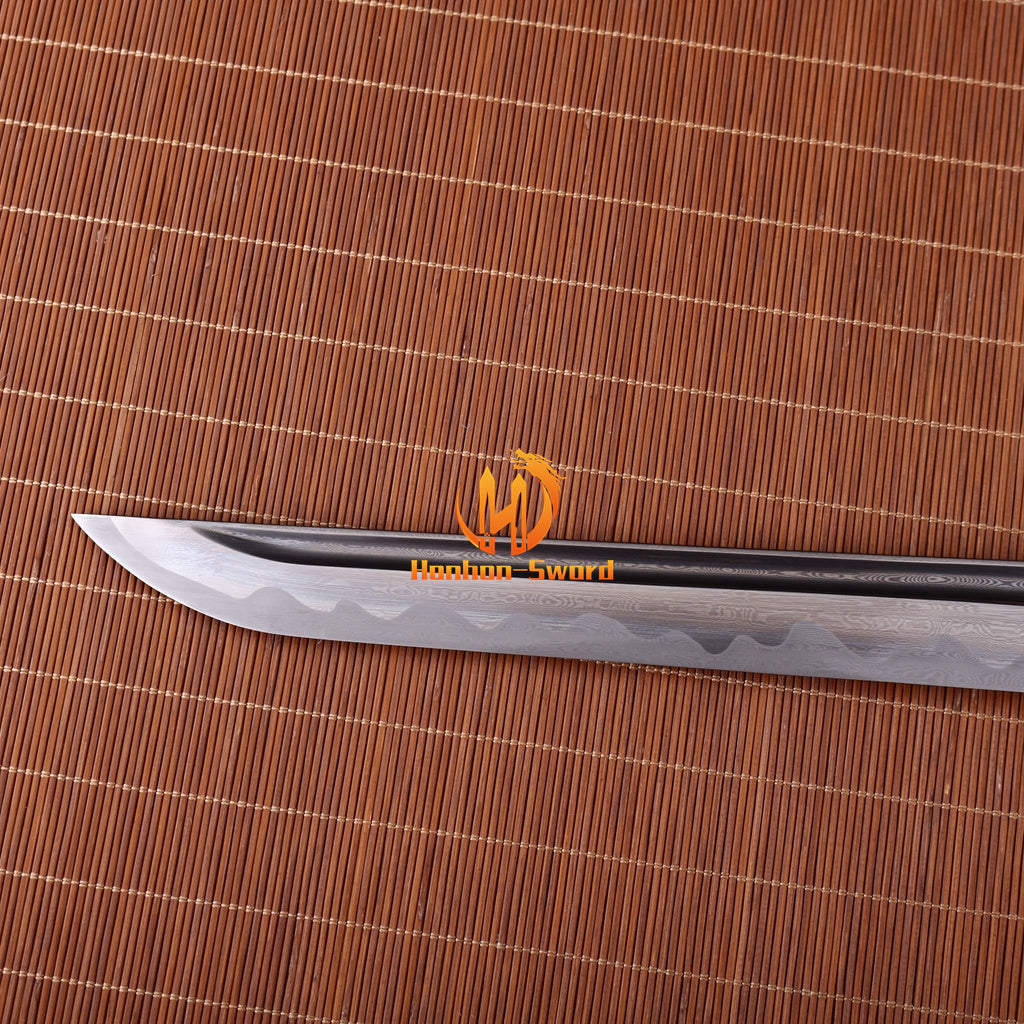 L'épée katana est fabriquée en acier plié dans la structure Maru et est livrée avec une soie pleine longueur qui améliore considérablement la résistance de l'épée lors du balancement. Entièrement forgée à la main, mise en forme à la main, polissage à la main selon la méthode de fabrication d'épée la plus traditionnelle.