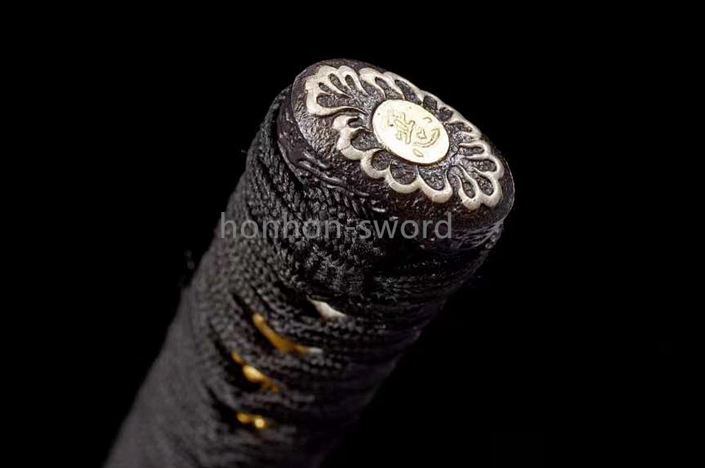 L'épée katana est fabriquée en acier plié dans la structure Maru et est livrée avec une soie pleine longueur qui améliore considérablement la résistance de l'épée lors du balancement. Entièrement forgée à la main, mise en forme à la main, polissage à la main selon la méthode de fabrication d'épée la plus traditionnelle.