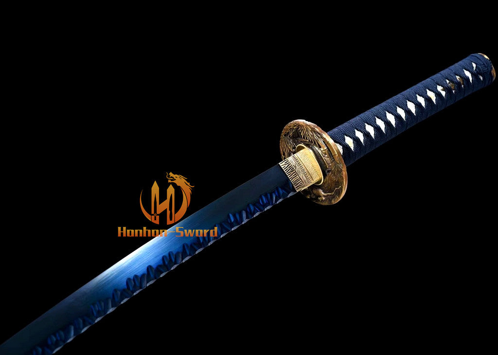 1095 High Carbon Steel Blue Treated Japanese Katana Samurai Sword Full Tang For Battle