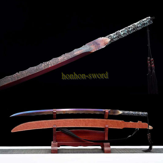 High Manganese Steel Chinese Broad Dao 龙虎朴刀 Long Handle Chinese Dao Sword Brown