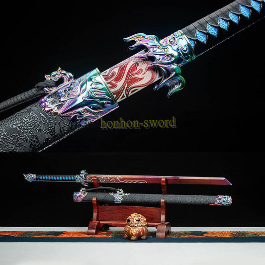 Japanese Katana High Manganese Steel Blue Blade Samurai Sword Full Tang Sharp