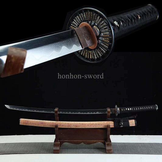 Japanese Katana Tamahagane Steel Samurai Sword Brass Tsuba Full Tang Real Sharp.