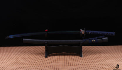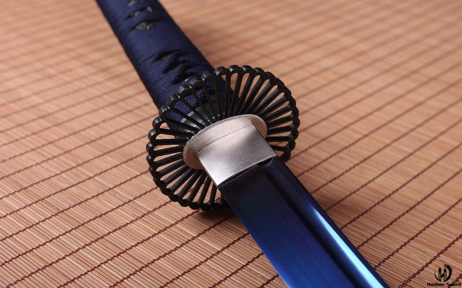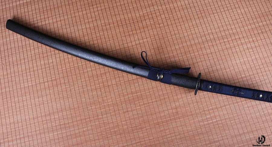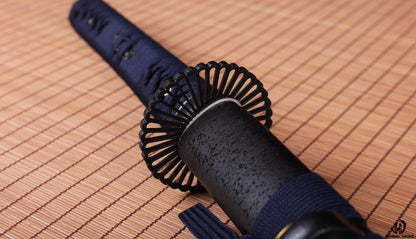 1095 Kohlenstoffstahl Katana Blaue Klinge Japanisches Samurai-Schwert Full Tang Schwarz