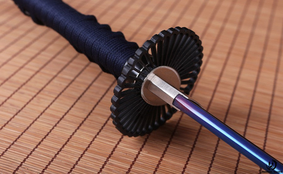 1. Die Klinge wurde aus 1095 Kohlenstoffstahl in Maru-Struktur gefertigt, sie wurde nach der traditionellsten Methode der Schwertherstellung vollständig von Hand geschmiedet, von Hand geformt und von Hand poliert.