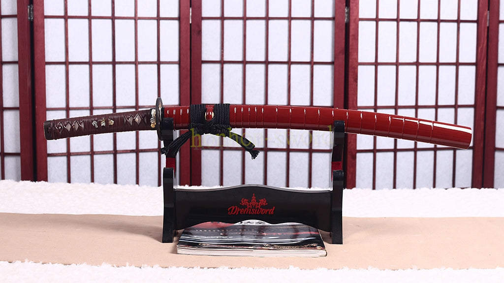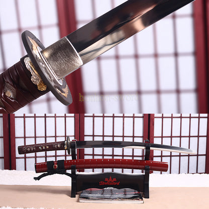 9260 Federstahl KOGARASUMARU Zukuri Wakizashi Japanisches Samuraischwert Rot