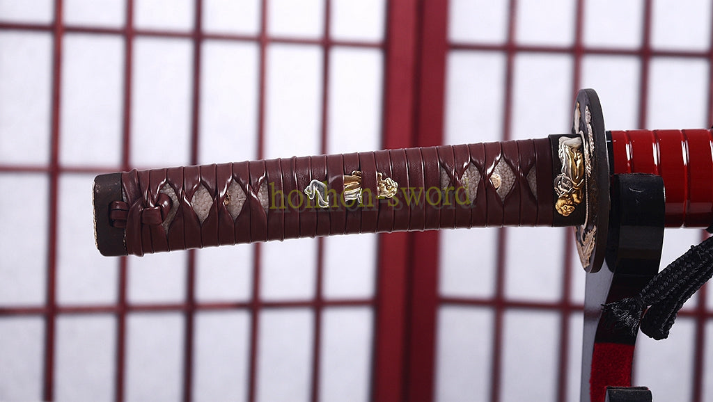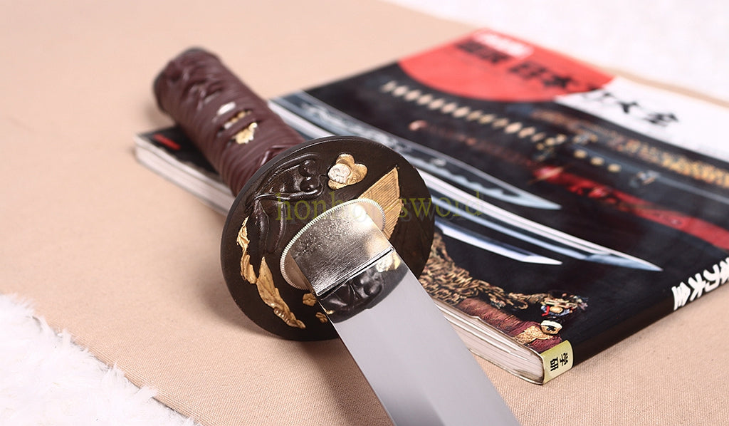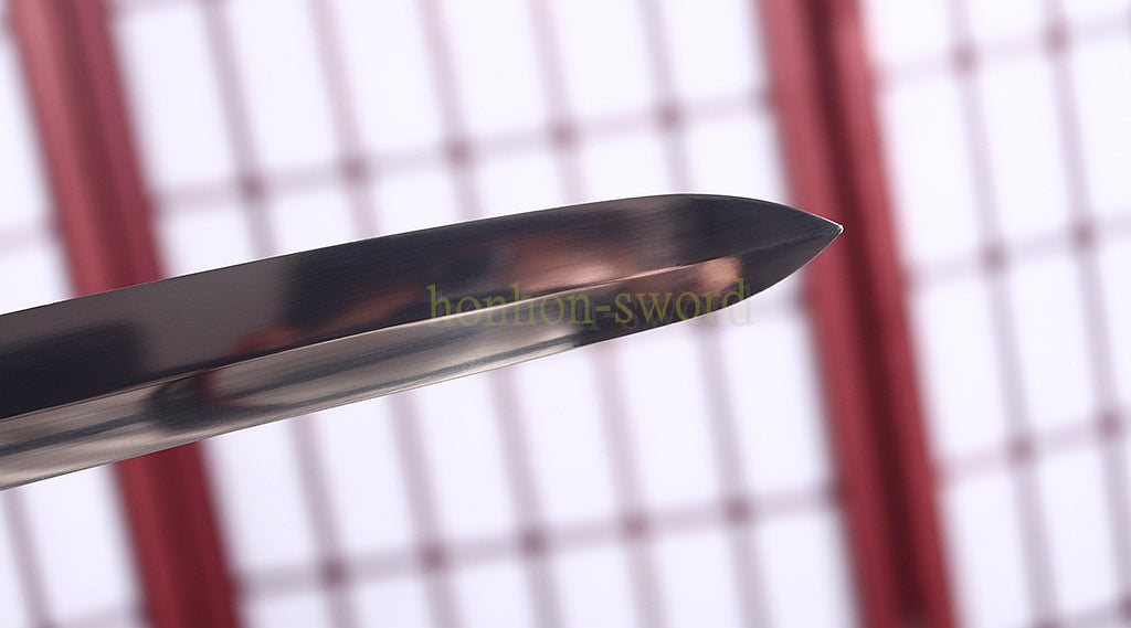 1. Die Klinge wurde aus 9260 Federstahl in Maru-Struktur gefertigt, sie wurde nach der traditionellsten Methode der Schwertherstellung vollständig von Hand geschmiedet, geformt und poliert.