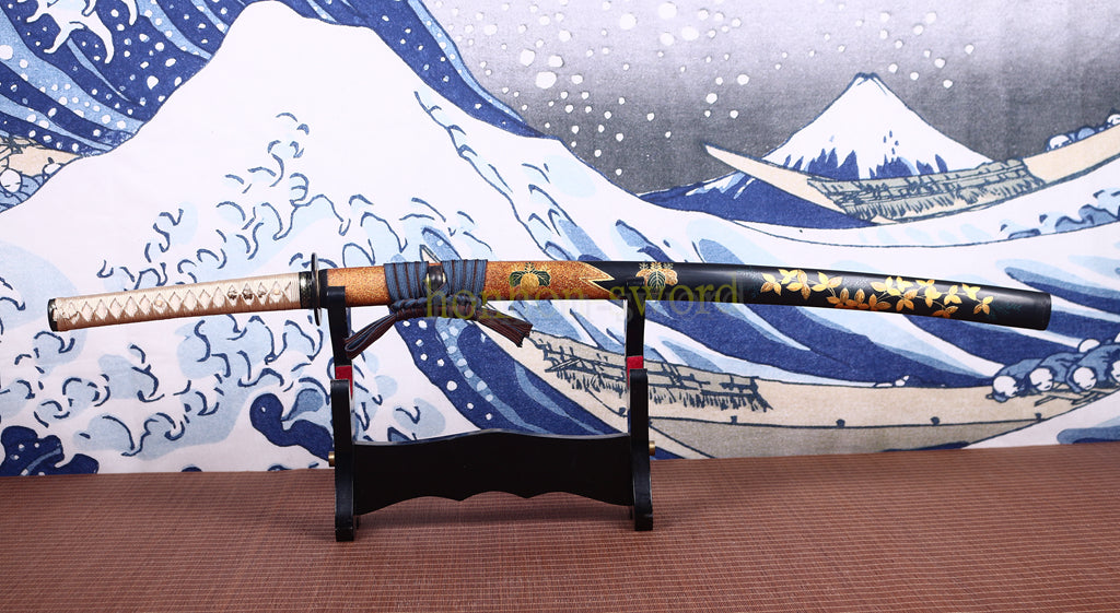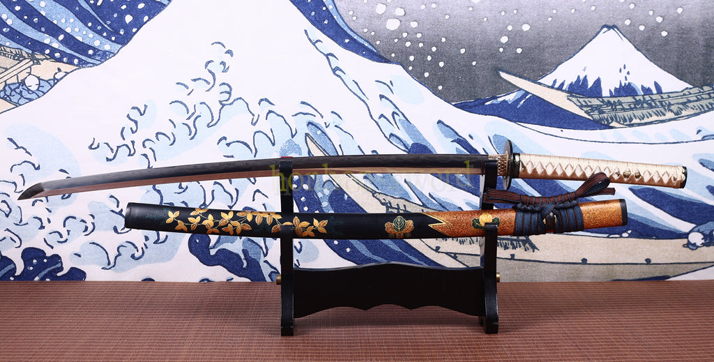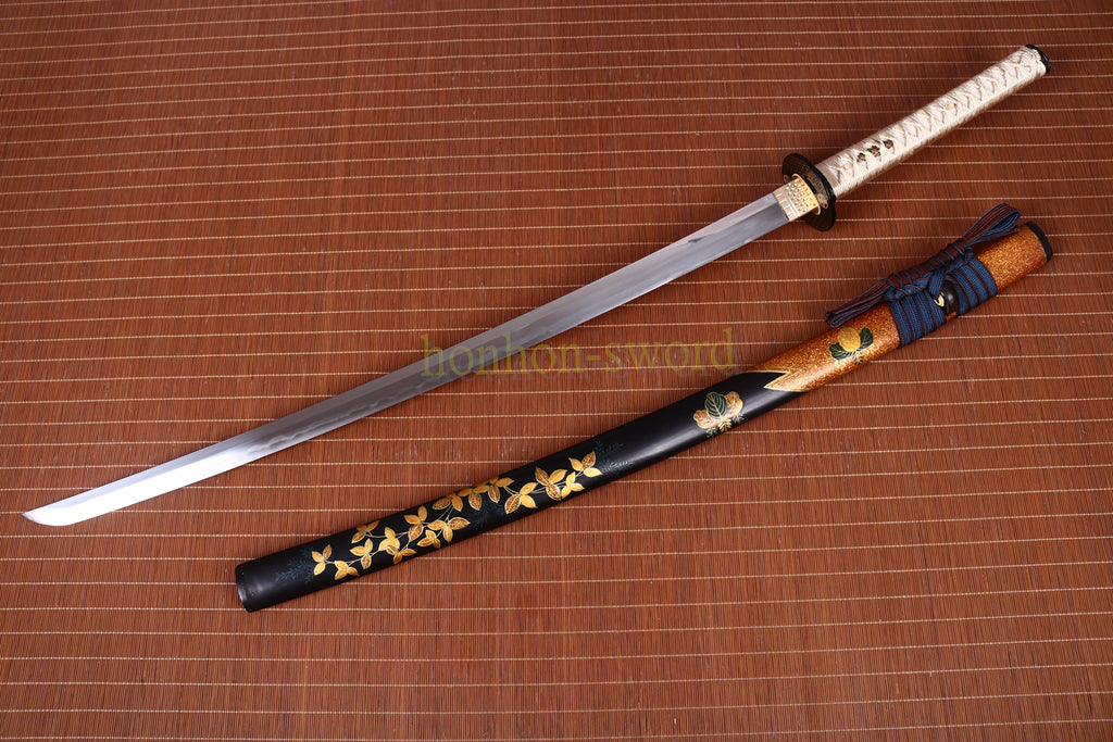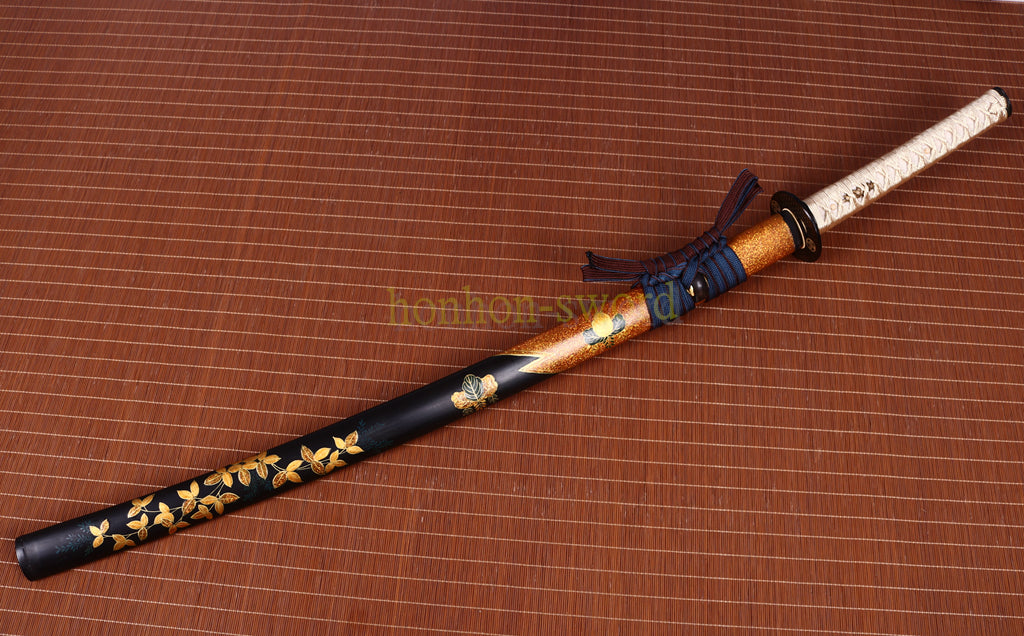 1. Die Klinge wurde aus 1095 Kohlenstoffstahl in Maru-Struktur gefertigt, sie wurde nach der traditionellsten Methode der Schwertherstellung vollständig von Hand geschmiedet, von Hand geformt und von Hand poliert.