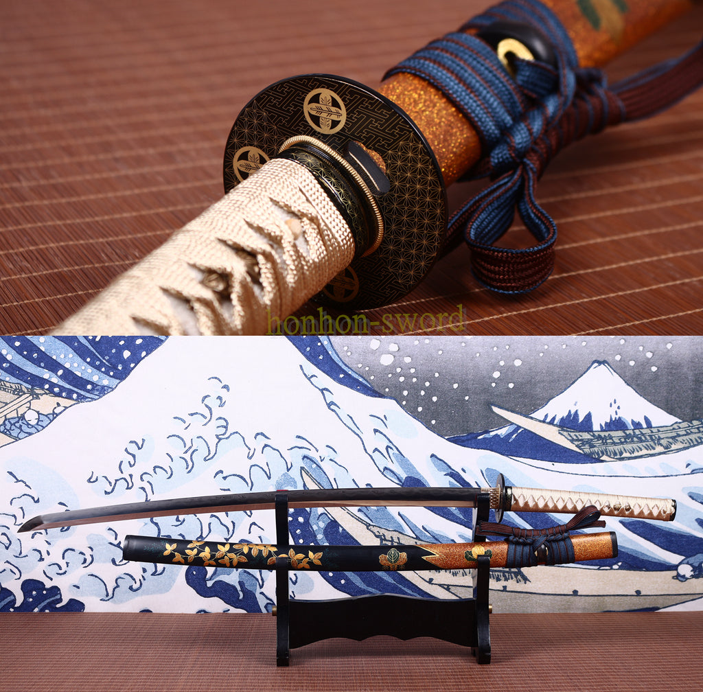 1095 Kohlenstoffstahl Katana Blaue Klinge Japanisches Samurai-Schwert Full Tang Schwarz