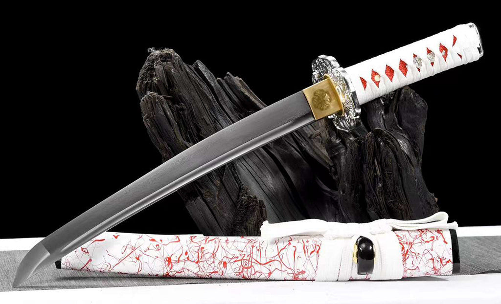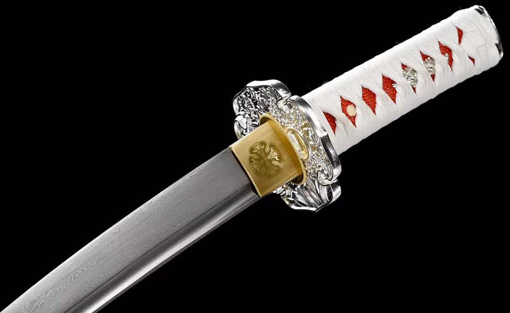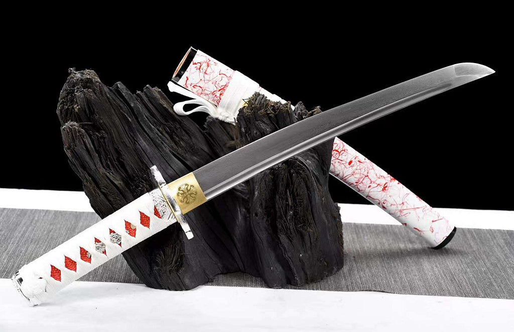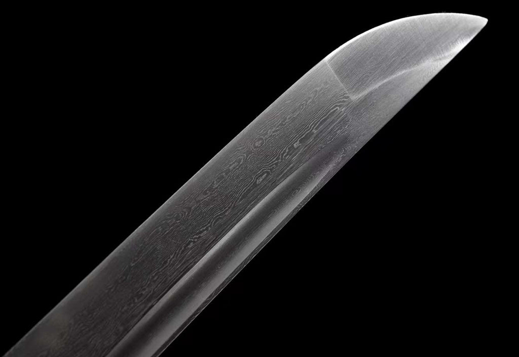 1. La lame a été fabriquée en acier Damas plié dans une structure Maru fondue et pilée pour se plier 13 fois pour créer 8192 couches. couches à plier à des rythmes. Il s'agissait d'un forgeage, d'un façonnage et d'un polissage à la main selon la méthode la plus traditionnelle de fabrication d'épées.