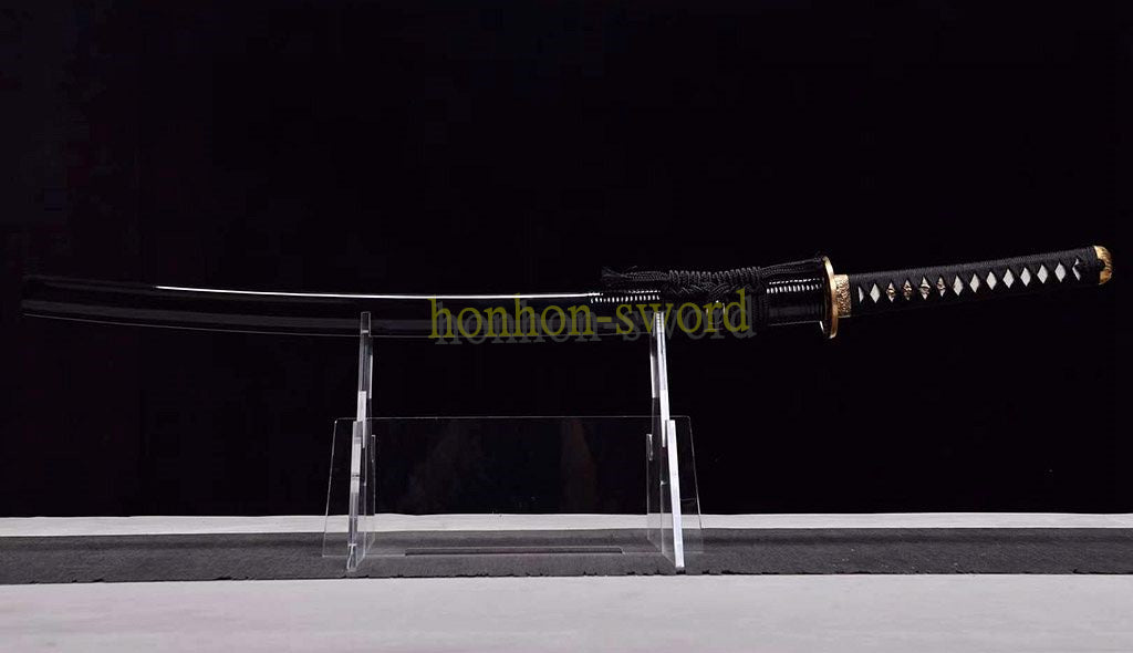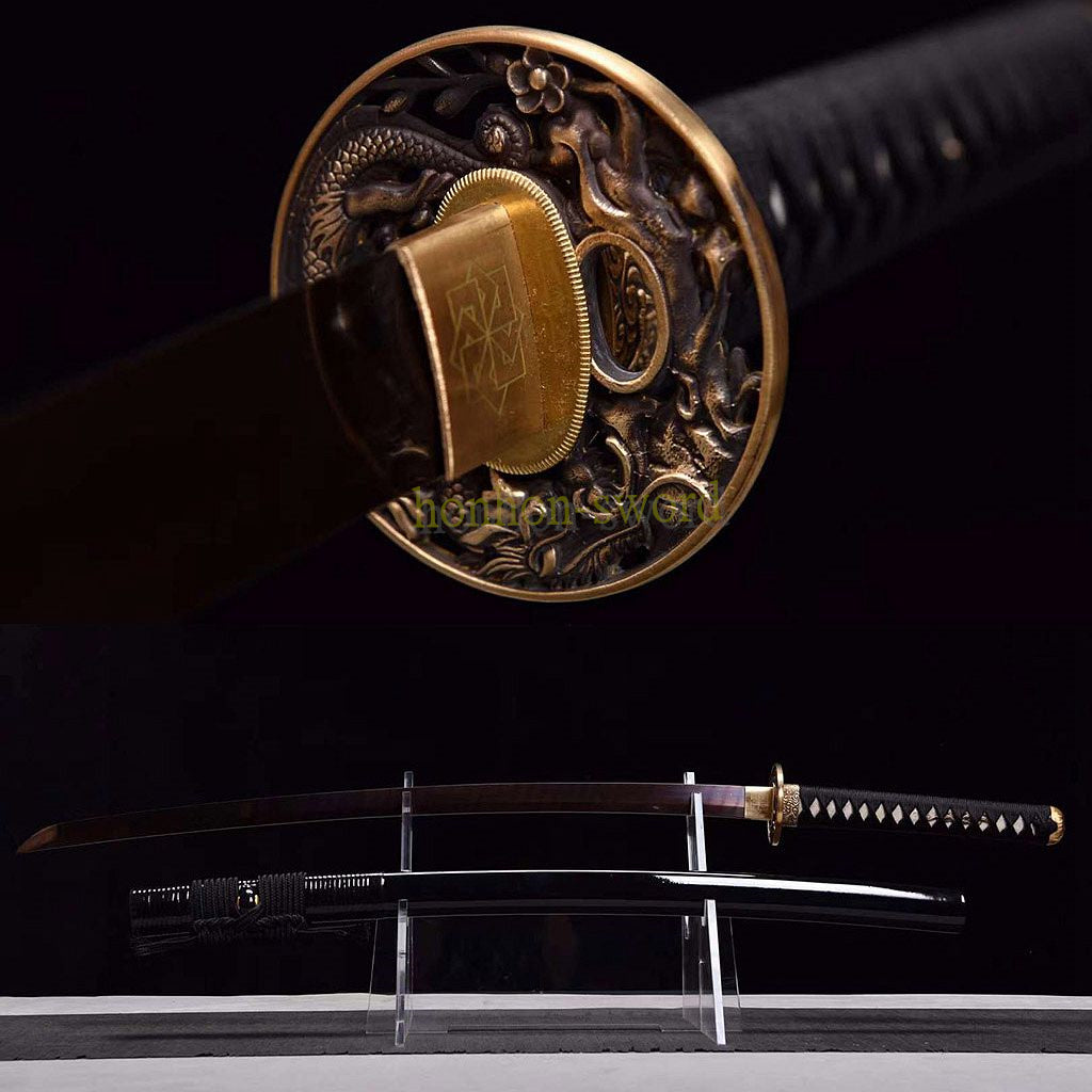 Épée de samouraï japonaise en acier plié noir, katana, lame tranchante faite à la main, noire