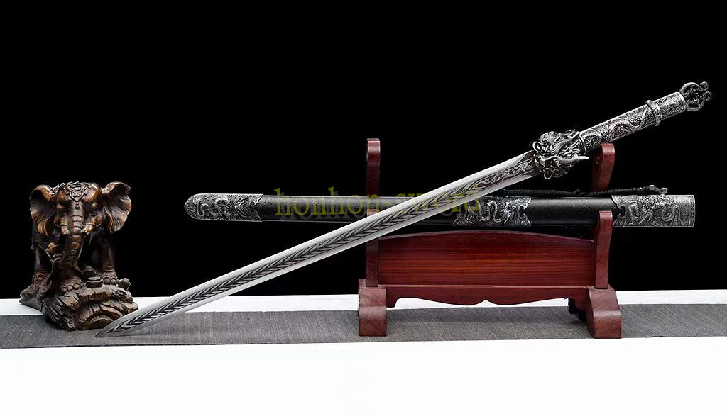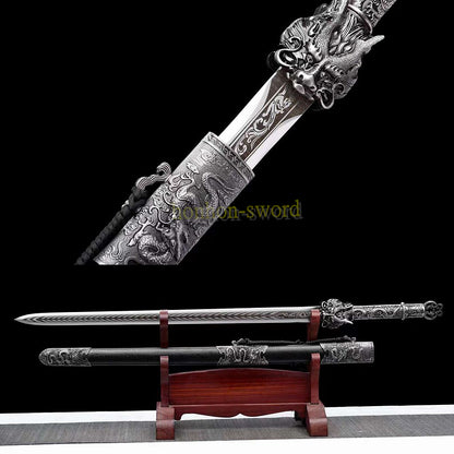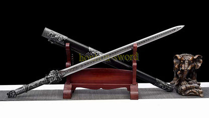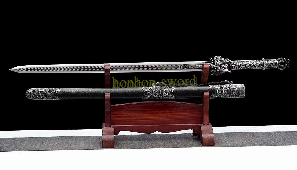 Épée chinoise Han Jian en acier à haute teneur en manganèse, lame bleue prête pour la bataille