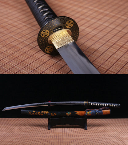 Katana à lame bleue en acier à haute teneur en carbone 1095, épée de samouraï japonais, épée complète noire