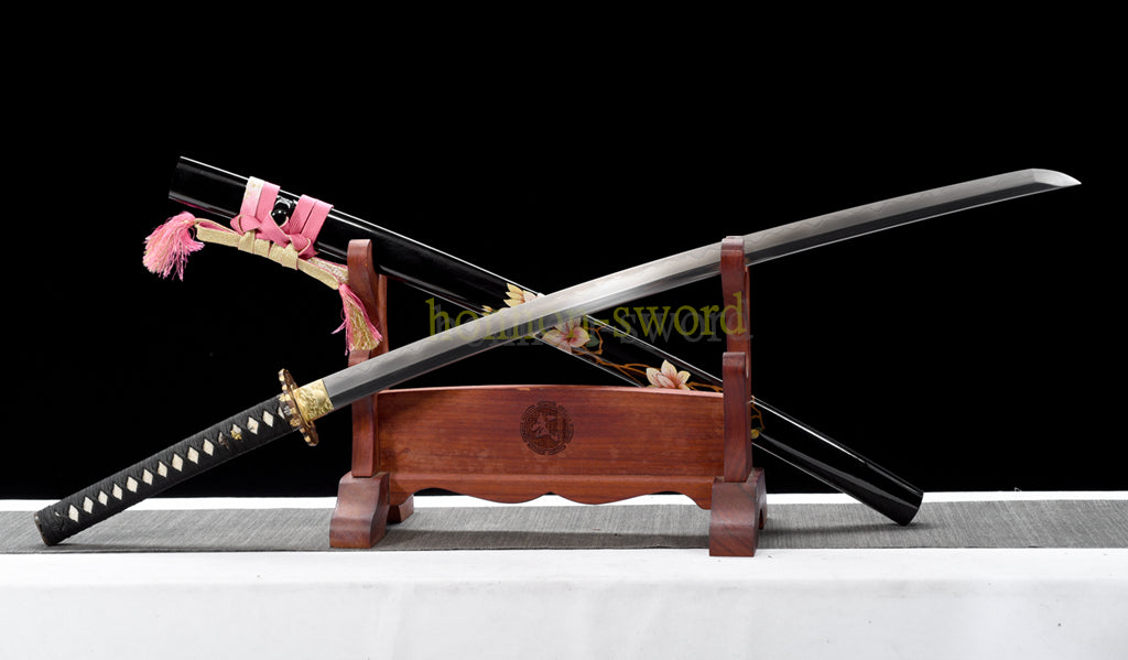 Katana à lame bleue en acier à haute teneur en carbone 1095, épée de samouraï japonais, épée complète noire