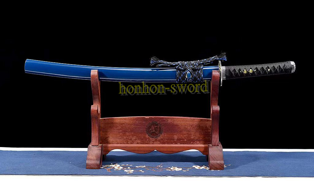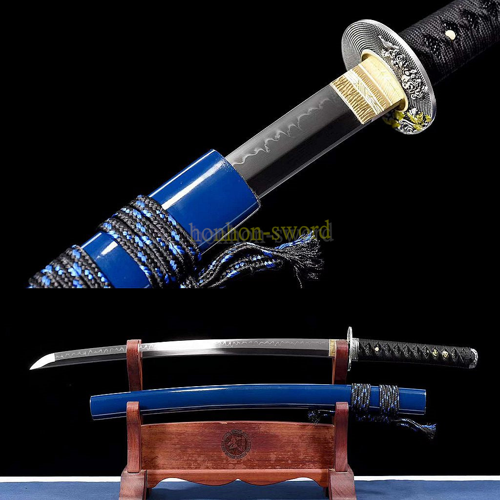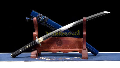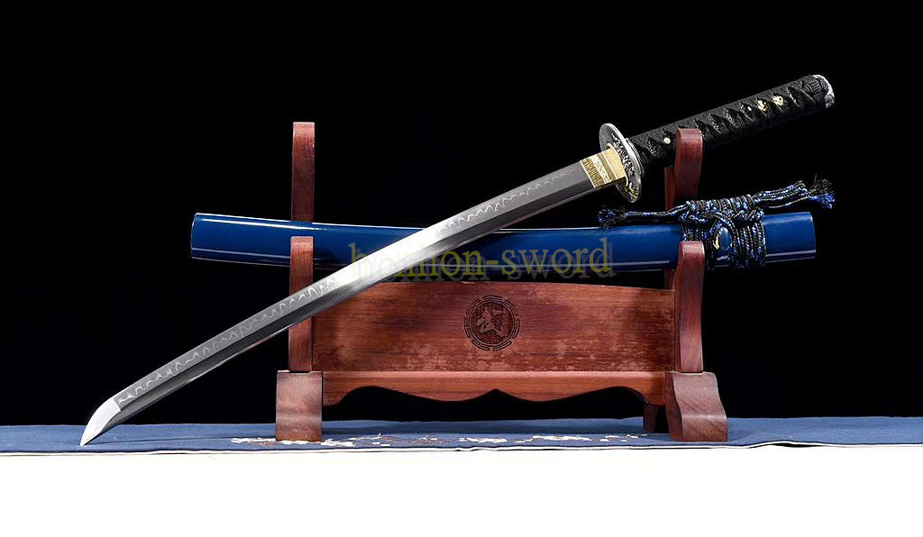 Katana à lame bleue en acier à haute teneur en carbone 1095, épée de samouraï japonais, épée complète noire