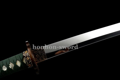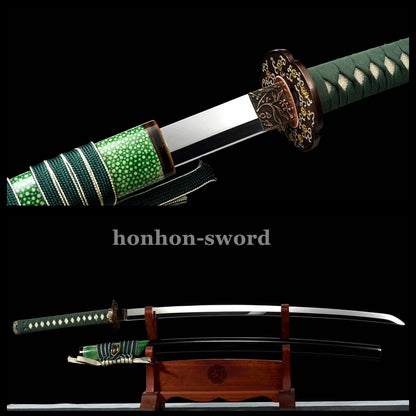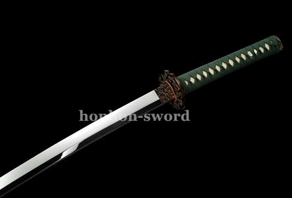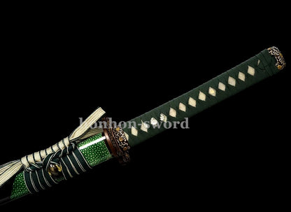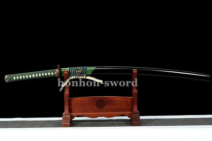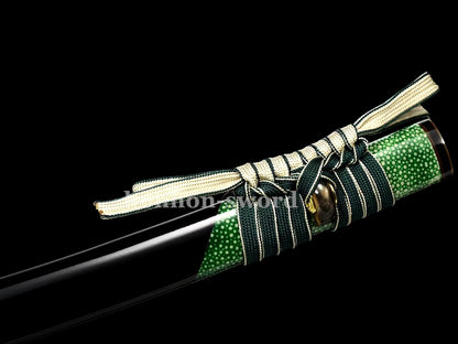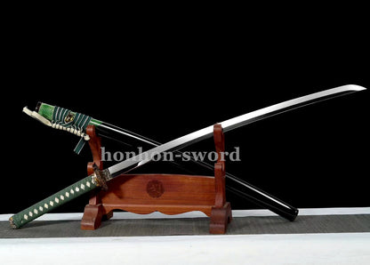 1060 Carbon Steel Katana Mirror Polish Japanese Samurai Sword Full Tang Green Same Saya