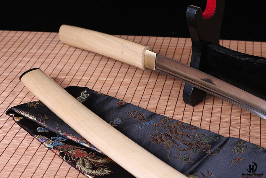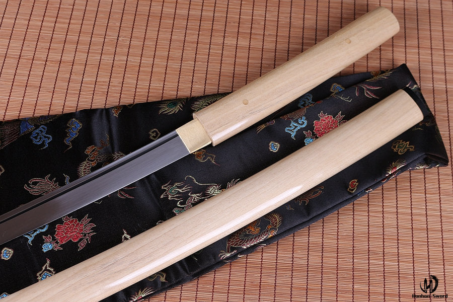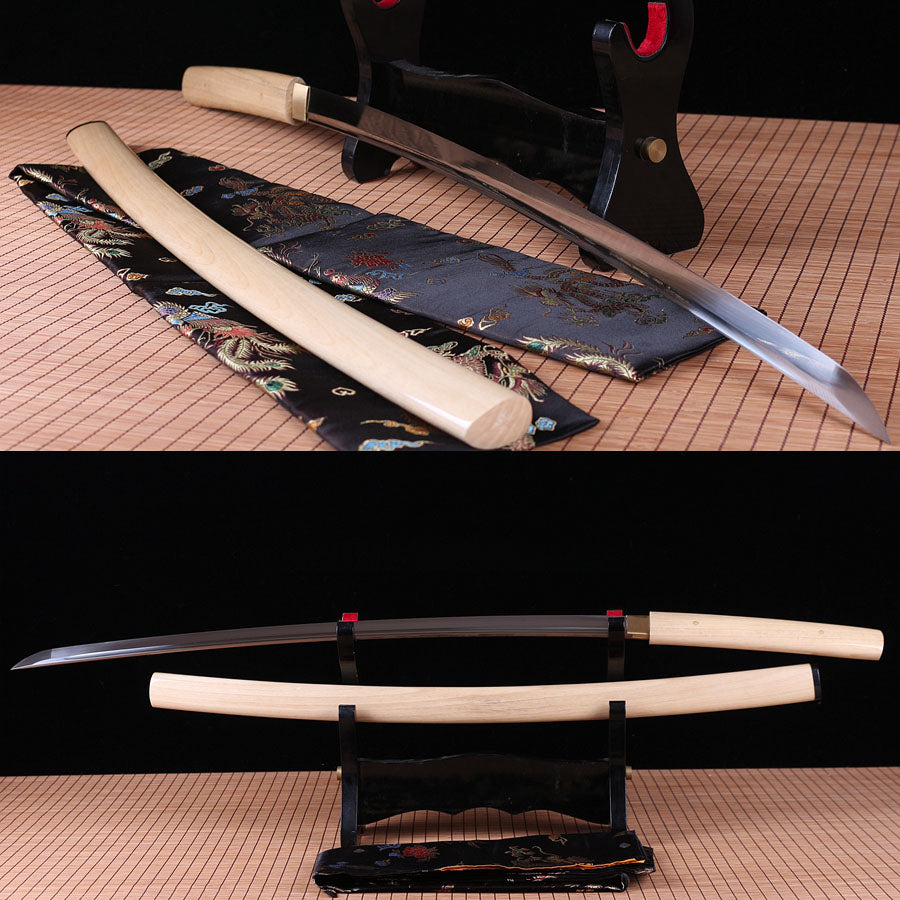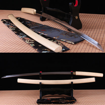 1095 High Carbon Steel Shirasaya Japanese Samurai Sword Full Tang Battle Ready Wooden