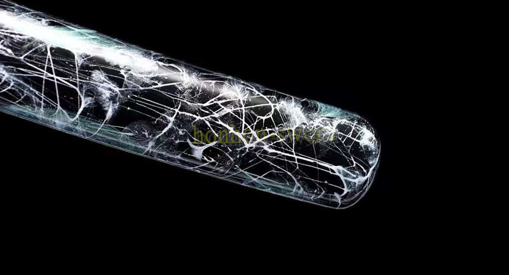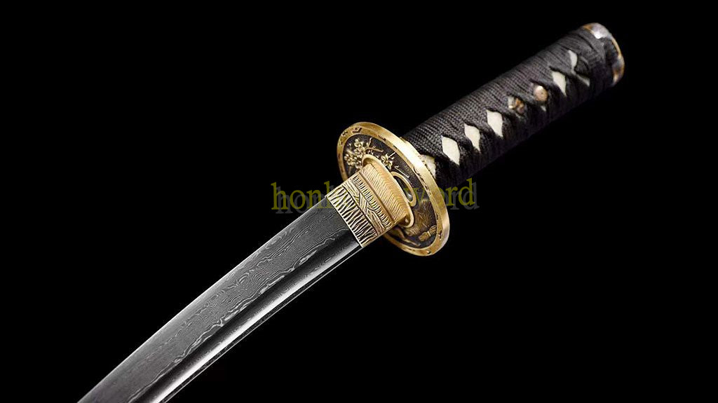 1.The balde was made of folded Damascus steel in Maru structure smelted and pounded to fold 13 times to creat 8192 layers. Not only can remove the remain impurities of the carbon steel and better distribute the carbon to form the blank, but also allow the layers to bend at rates. It was Fully hand forging, hand shaping, hand polishing in the most traditional method of sword making.