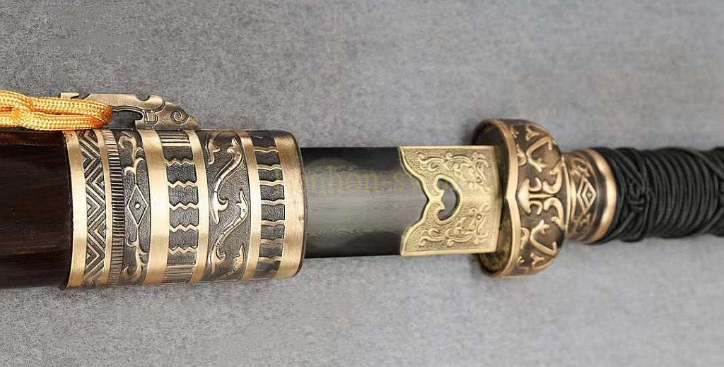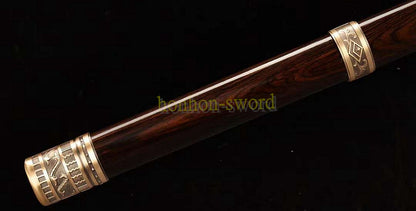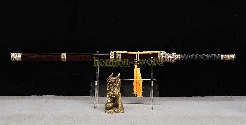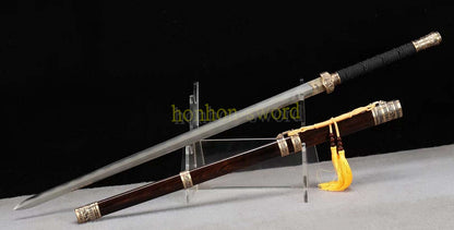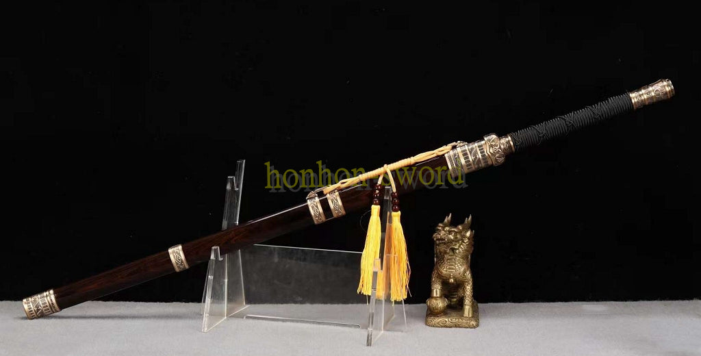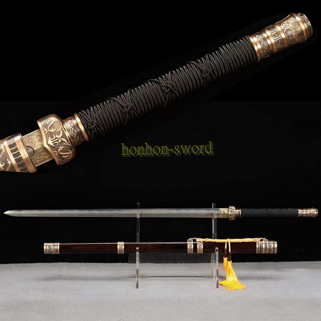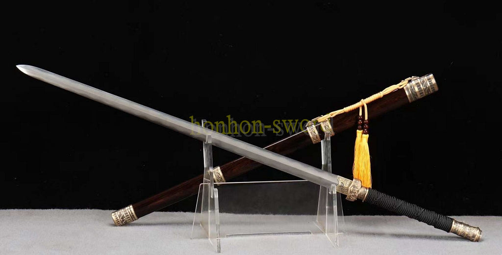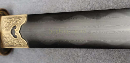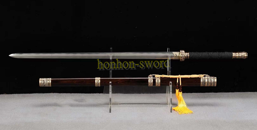 Damascus Folded Steel Clay Tempered Jian 剑 Abrasive Chinese Jian Sword Ebony Sheath