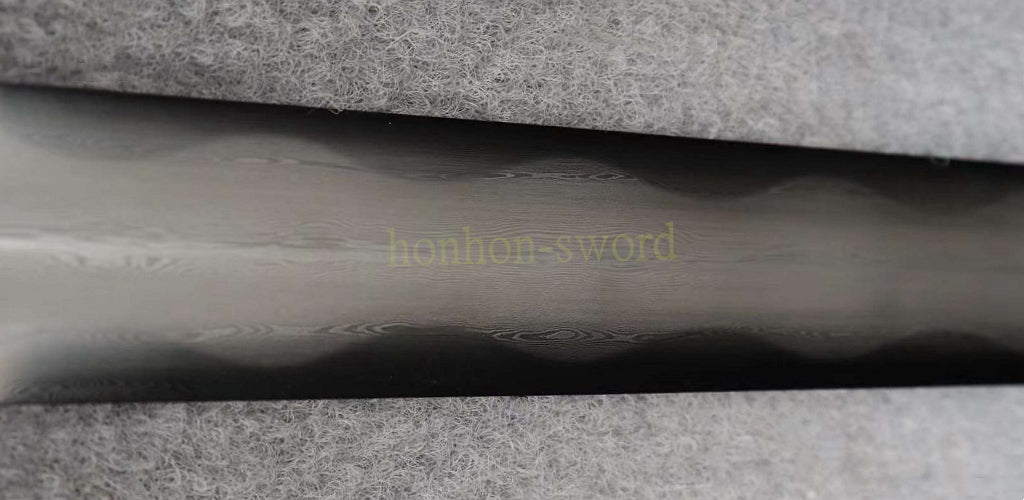 1.The balde was made of folded steel in Maru structure smelted and pounded to fold 13 times to creat 8192 layers, not only can remove the remain impurities of the carbon steel and better distribute the carbon to form the blank,But also allow the layers to bend at rates. It was Fully hand forged, hand shaping, hand polishing in the most traditional method of sword making.
